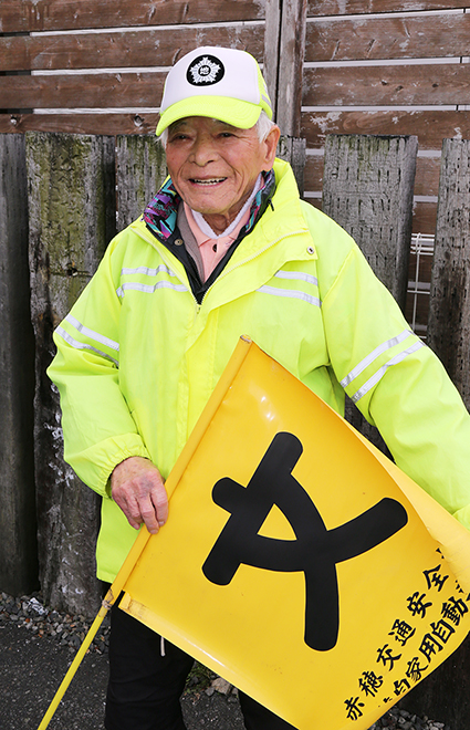 登校中の子どもたちを事故や犯罪から守ろうと、塩屋小学校の通学路交差点で30年以上にわたって朝の立ち番を行ってきた塩屋の木村音彦さん(90)が今年度限りで活動を終了することになった。長年の善行に対し周囲から感謝とねぎらいの声が寄せられている。