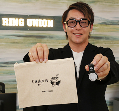 新小学1年生向けに防犯笛をマスクケースを寄贈したリングユニオンの坪田万導社長