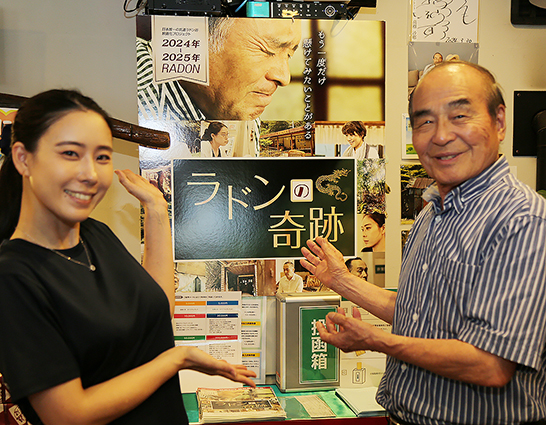 作品は坑道ラドン浴を体験した人たちのエピソードにフィクションを交え、家族愛や絆、人の出会いを描く。「見る人の心に深く響く作品に仕上げていただいてありがたい」と亀井さん。上映会は小ホールで午後1時開場、1時半から亀井さんや徳監督、出演者の舞台挨拶に続いて上映する。当日定員になり次第、受付を終了する。
