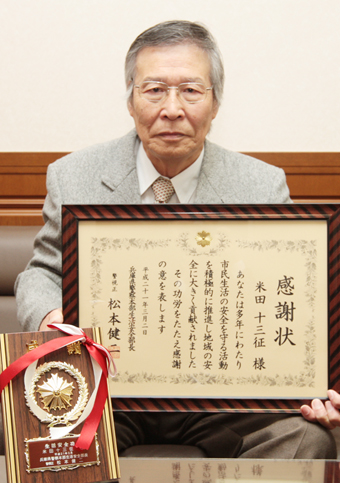 米田さんは昭和63年から少年補導員として地域を防犯パトロール。子どもたちを犯罪や非行から守ろうと、20年以上にわたって活動している。