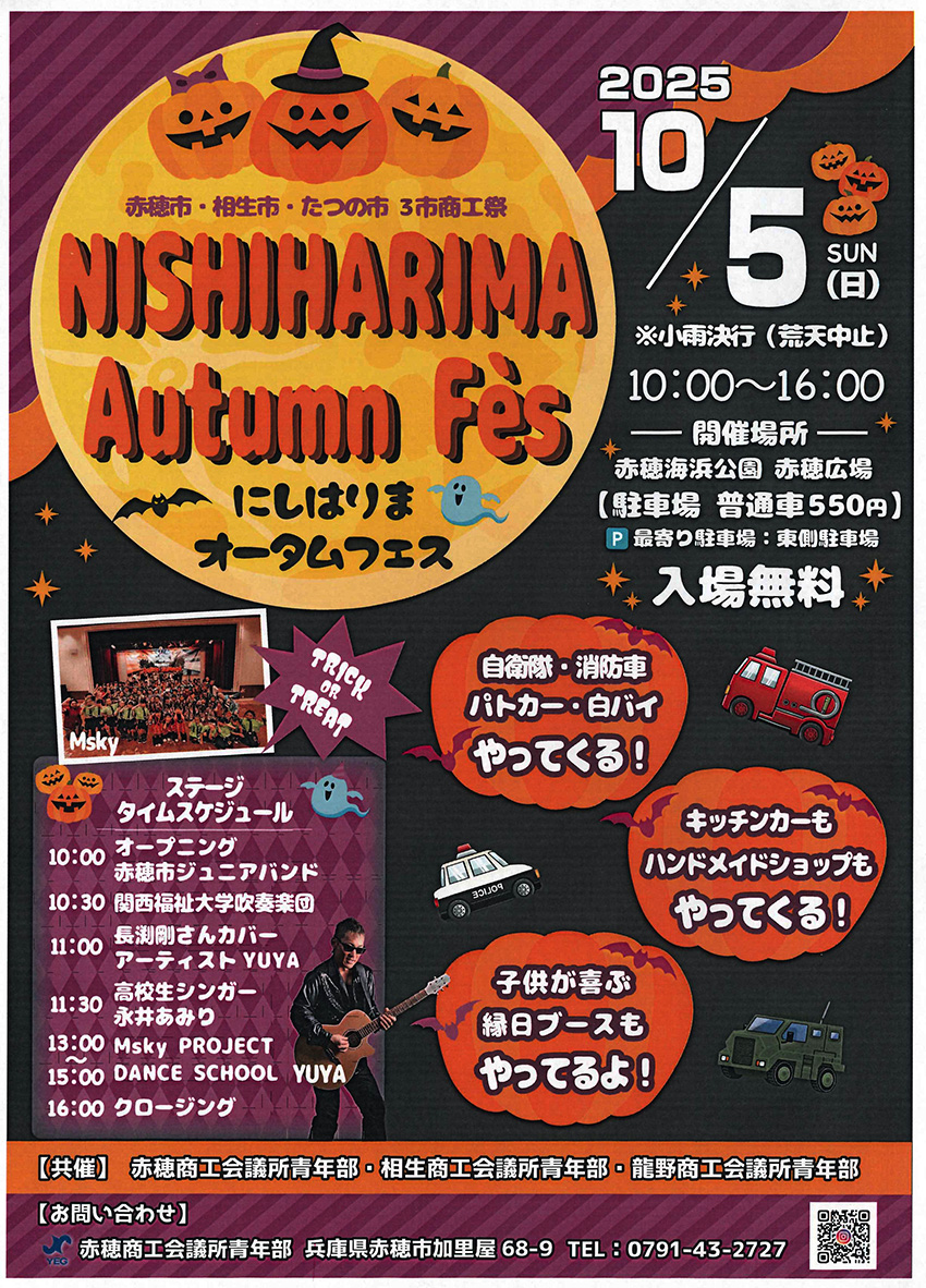 赤穂広場で午前10時〜午後4時。小雨決行、荒天中止。TEL43・2727。
