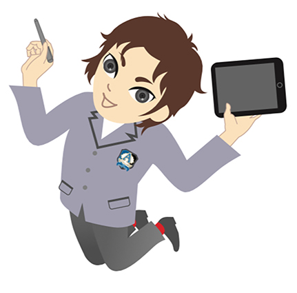 ロゴマークは東大阪市のプランナー、河野均さん(58)=38回生=が考案。100周年を意味する「100th」を図案化し、2つのゼロを無限大記号(∞)に置き換えて「限りない発展」を表した。キャラクターをデザインしたのは川崎市のグラフィックデザイナー、木虎和生さん(59)=36回生=。来年度から導入される新制服を着用し、タブレットとペンを手にジャンプする生徒をはつらつと描いた。