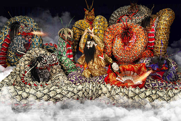 石見神楽の古典演目の一つ「大蛇」の一場面=大都神楽団提供