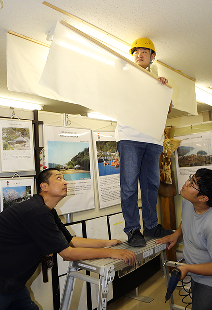 プロジェクトに参加した金子ゼミの小山稜太さん(19)=2年、上郡町=と山口響暉(ひびき)さん(18)=1年、太子町=は「坂越の居心地の良さを感じてもらう入口になれば」と期待を込めた。