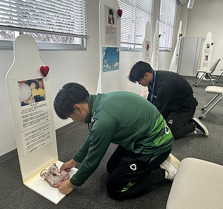 いずれも彼らが亡くなった当時の身長と同じ高さの人型パネルで、それぞれ生前の写真と遺族のメッセージを掲示。足元には生きた証として履いていた靴が置かれた。来場者は一体一体に向き合って彼らが発するメッセージに心を傾けた。