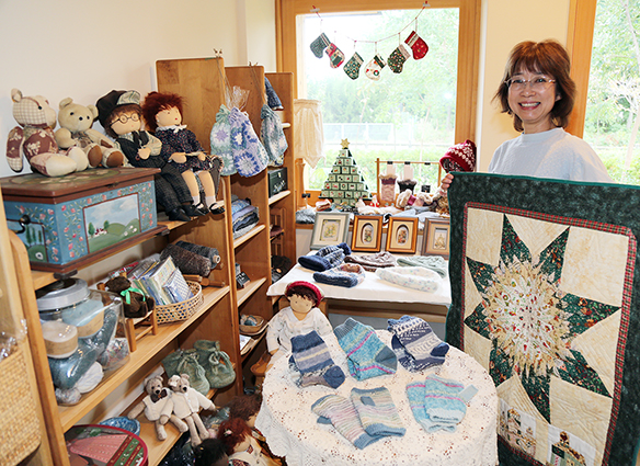 個展を開くのは元禄橋町の手芸講師、耳田由美子さん(59)。小学2年で伯母から編み物を教わり、そのまま手芸がライフワークとなった。今年3月末に小学校教諭を退職後、自宅にアトリエを兼ねた手芸ショップ「you and me」を6月にオープンした。