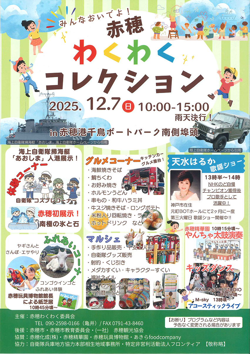 グルメコーナーやマルシェ、ステージイベントなどを多彩に楽しめる催し「赤穂わくわくコレクション」が12月7日(日)、加里屋の赤穂港千鳥ボートパーク南側埠頭で午前10時〜午後3時に開かれる。