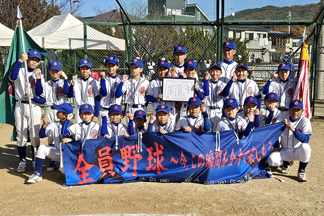 第48回JC旗争奪少年野球お別れ大会で9年ぶり6度目の優勝を飾った尾崎野球少年団=赤穂市少年野球連絡会提供