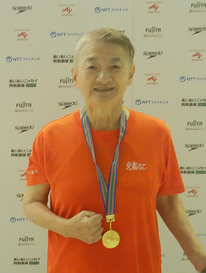 吉川さんが練習する光都SCの末政博文コーチは「好タイムは努力の賜物。頑張った成果が記録に表れた」と称える。同大会で獲得した金メダルは通算7個となり、吉川さんは「これからも挑戦を続けたい」と意欲を見せた。