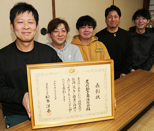 表彰式は昨年11月に京都市内であり、馬場邦昌代表が表彰状を受け取った。「とても名誉ある賞で、今までやってきたことが認められた。担い手の確保など課題はあるが、地域の理解を得ながら、これからも伝統を継承していきたい」と抱負を語った。