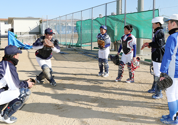 赤穂高校で少年野球教室 部員らが元気にコーチ