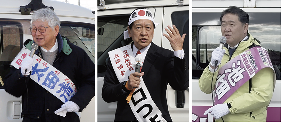 立候補したのは届け出順に、▽維新前職の池畑浩太朗氏(51)▽自民前職の山口壮氏(71)▽共産新人で党常任地区委員の太田清幸氏(70)。各候補の赤穂市内での演説を取材した。