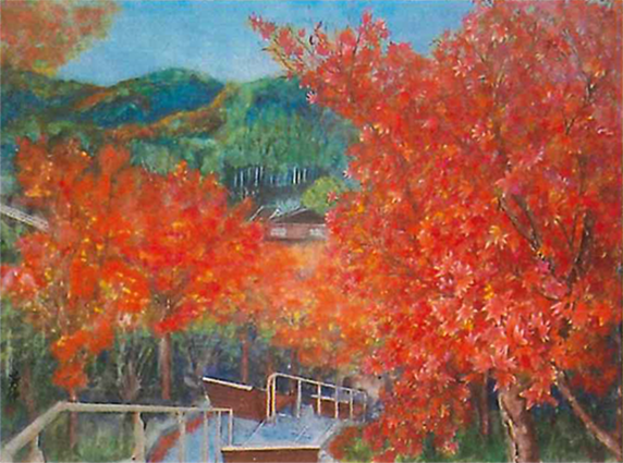 展示作品の一つ、池田よしのぶさん画『紅葉の階段』