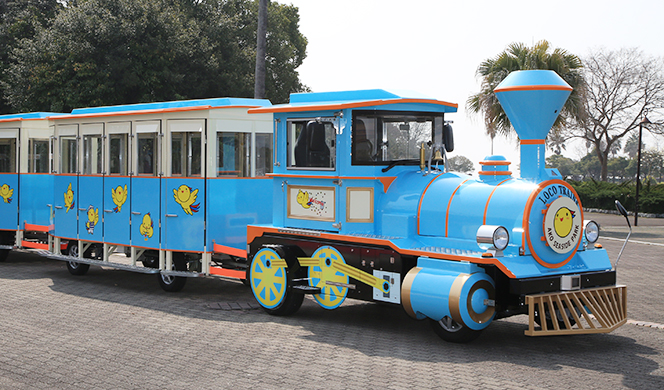 園内の遊園地「タテホわくわくランド」の営業日に運行し、6つの停留所がある1周2・4キロメートルの園路を約30分程度で巡る。一人500円で一日乗り放題(3歳未満無料)。