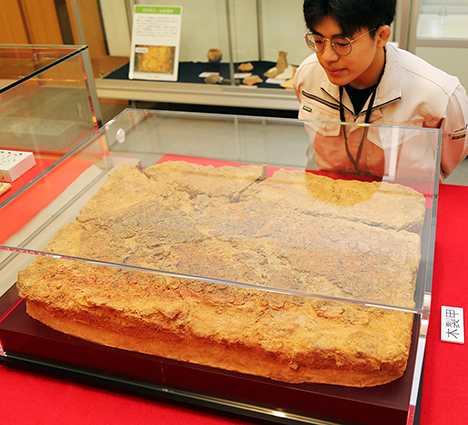 赤穂市教育委員会は、75年前に上郡町の西野山3号墳で発掘され、全国で3例しかない木製甲(よろい)の保存処理をこのほど完了。有年楢原の赤穂市立有年考古館で開催中の企画展「西野山3号墳―赤穂郡の前期古墳―」で公開している。