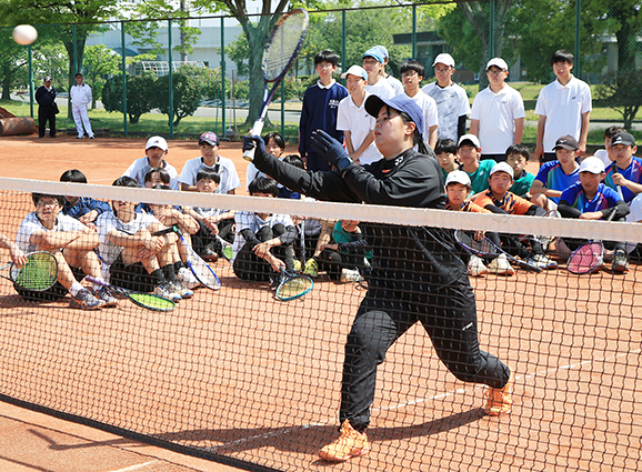 トップアスリート招き軟式テニス講習 中学生約70人受講
