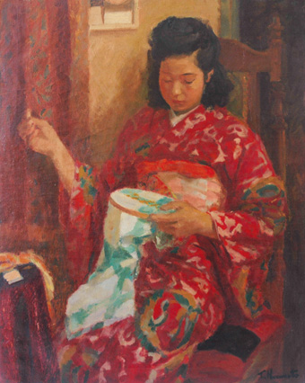 藤本東一良「刺繍する娘」