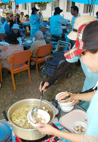 参加したお年寄りらは「みんなでワイワイ言いながら食べるのは楽しい」「こんなに笑ったのは久しぶり」と満足そうだった。
