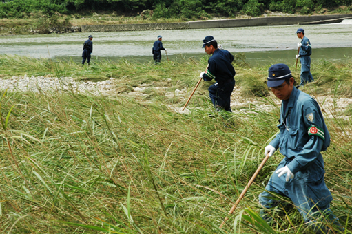 13日はさらに下流の周世地区あたりまで範囲を拡大して捜索活動を行う予定。