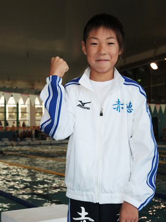 4歳から水泳を始めて小学1年生から選手コースへ。「他の選手が1週間かけて覚えることを、その日のうちにマスターできる」(水元智コーチ)というセンス。フォーム作り重視の練習ながら、順調に記録を伸ばしている。