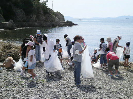今年で32年目の恒例行事で親子約600人が参加。地区ごとに持ち場を分担し、大塚海岸や御崎海岸など9エリアでごみ拾いと草抜きを実施した。