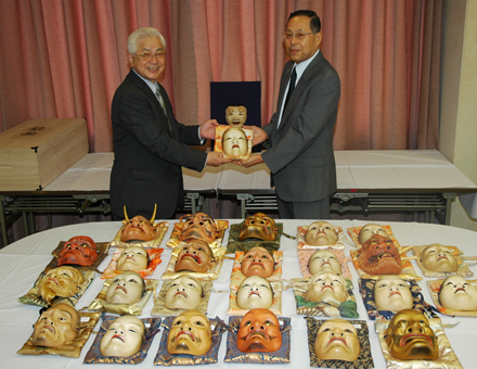 同財団では、寄贈された面を市立美術工芸館・田淵記念館に月替わりで展示し、来春に一斉公開を予定している。