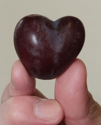 今年6月に亡くなった義母の100カ日法要に供えられたブドウで、4房あった中から1粒だけハート型だったという。