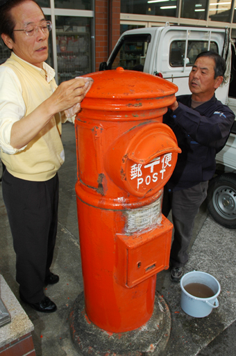 会員12人に現役局員2人も参加。駅前、大手門前など人通りの多い場所を中心に9カ所を手分けして実施した。洗剤を付けた雑巾でポストをこすると、汚れが取れて鮮やかな朱色を取り戻した。