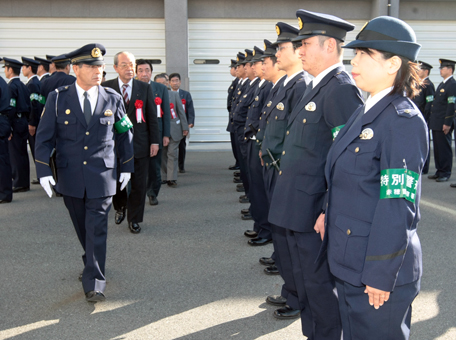 部隊視閲した西村玉夫署長は「赤穂の治安は我々の双肩にかかっているという気概をもって職務にあたってほしい」と訓示。署員を代表して地域課第2係の金川直一郎巡査(26)が「市民の方々が安心して暮らせる平穏なまちを守るために全力を尽くします」と決意表明した。