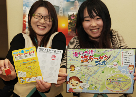 スタンプラリーは3月14日まで実施。8店すべてで「播州赤穂塩ラーメン」を食べた人に記念バッジを進呈。抽選で15人に赤穂の特産品をプレゼントする。
