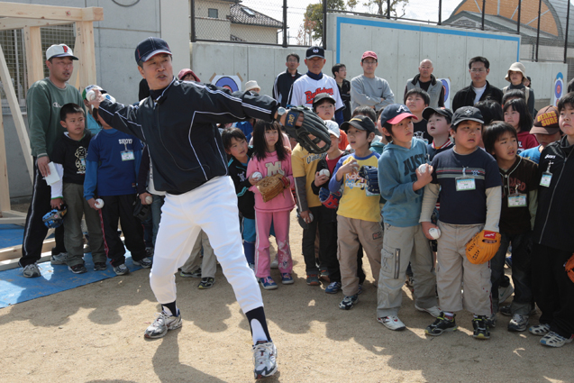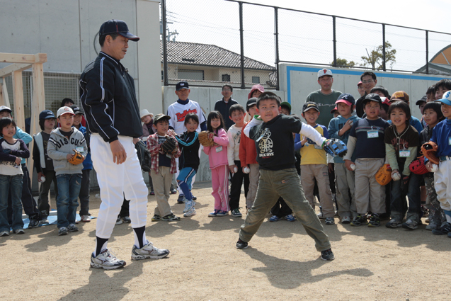 塩屋の上荷涼一君(10)は人差し指と中指の間を指一本分空けてボールを握ることを教わり、「とても投げやすくなった」。山田さんから「100点満点だよ」とフォームをほめられ、「中学に入ったら絶対野球部に入る」とうれしそうだった。