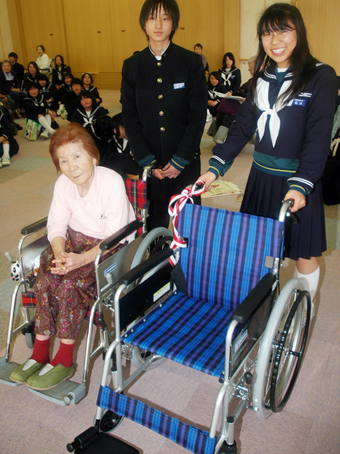今年で通算20台になった赤穂西中学校の車いす寄贈