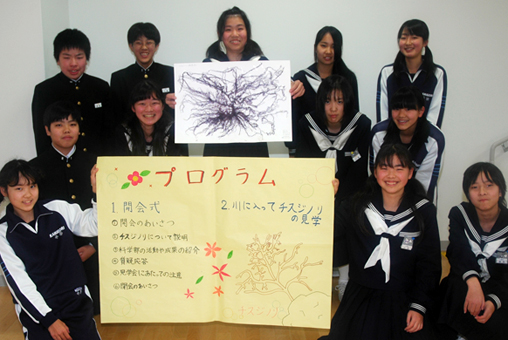 見学会では部員20人が個体数の増減理由、生育環境や生態について仮説を立てて発表する。水温3度を下回る真冬の川を素手で調査した2年生の大田沙也香さん(14)は「研究成果を多くの人に見てもらい、チスジノリの大切さを知ってほしい」と来場を呼びかけている。