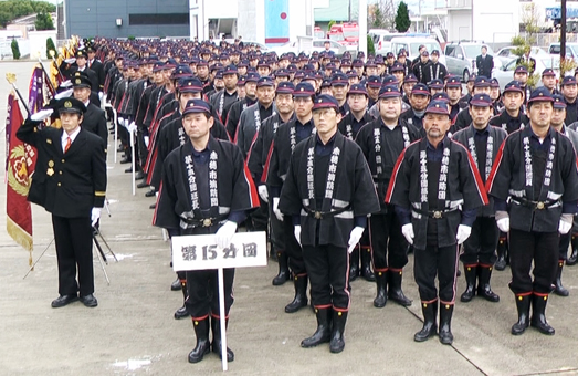 豆田正明市長は「消防人としての高い誇りと職務の重要性を深く認識し、あらゆる災害に即応できる心身鍛錬に努めてほしい」と式辞。望月昌次・消防団長が「昨年は火災による死者が市内で7年ぶりにゼロだった。今年も防火防災活動の推進にさらなる精進を」と訓示した。