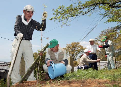 「尾崎のサクラ名所を守りたい」と植樹する尾崎まちづくり連絡協議会のみなさん