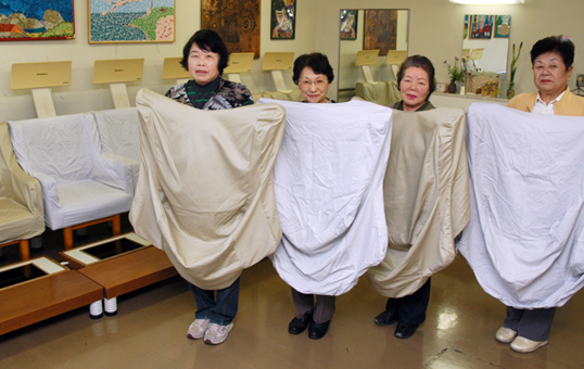 手作りカバーを寄贈した、ほほえみ会のみなさん