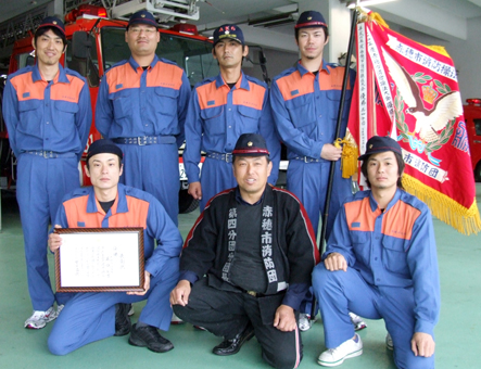 ▽4位以下のうち技能優秀者=東秀和、平岡英樹(第3分団)田渕秀幸(第6分団)宮本健次(第9分団)安藤啓吾(第13分団)吉田方哉、柏原邦彦(第14分団)三浦純一、宮本兼吾(第15分団)