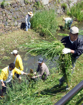 同会議所は昨年6月から毎月第1日曜日の朝に有志による清掃奉仕を同川で実施。行事を企画した行政連携委員会の中村友法委員長(34)は「以前に比べてごみが減ってきたような気がする。一人ひとりが川の理想像を思い描けるようになれば」と話していた。