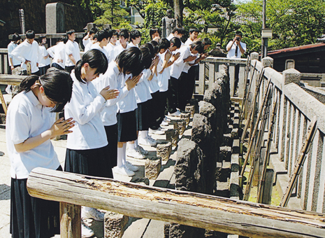 ほとんどの生徒は初訪問で、四十七士の墓に神妙な面持ちで手を合わせた。吉田校長は「線香の煙が絶え間なく立ち上る様子が生徒たちの印象に残ったようだ。短い時間だったが、赤穂の歴史に関心を深める機会になったのでは」と話していた。