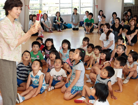 「すべてを見せてしまうテレビではなく、ページに描かれていない部分に思いを巡らせるところに絵本のすばらしさがある」と岡崎さん。「触れ合い遊びや絵本で幼いころに想像力や感性を育んであげて」と勧めた。