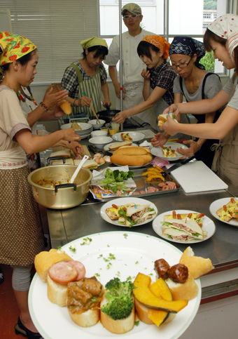 「冷蔵庫の余り物などを上手に使って、楽しみながら作って」と鈴木さん。朝日町の主婦、阿蘓早苗さんは「いいアイデアをもらいました。子どもの喜ぶ顔が楽しみです」とレシピをメモしていた。