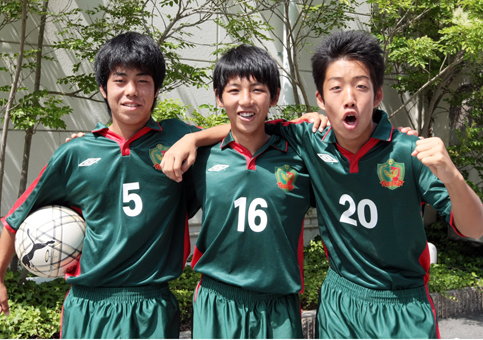 憧れの日本クラブユース選手権に出場する=右から=山田、水守、川嶋3選手