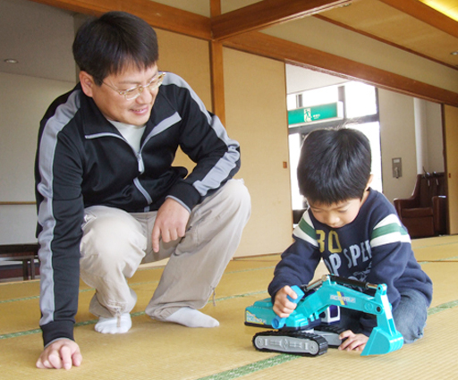 前月に預かっていたキャタピラーの切れたショベルカーも清水さんの手で元通りに。母親と引き取りに来た元禄橋町の瀬尾好太君(5)から「先生、ありがとう」と感謝された。
