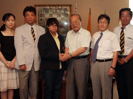 豆田正明市長を表敬訪問した台湾からの短期留学生、蔡侑師さん=左から3人目