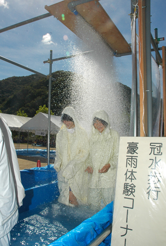 時間雨量50ミリを体験する参加者