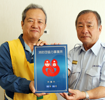 赤穂市の導入は兵庫県内の自治体では16番目。従業員が原則5人以上入団し、▽従業員の消防団活動への配慮に積極的▽災害時に資機材を消防団に提供−などを条件としている。事業所が自ら申請するか、消防団長による推薦も可。認定されれば青色を基調としたA4判サイズのプラスチック製表示証が交付される。有効期間は2年間。