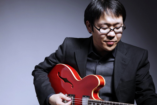 中学生とジャズのワークショップを開くギタリストの高免信喜さん