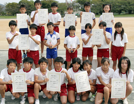 ▽5年400メートルリレー=(1)塩屋(水野、清水、西川、丸尾)60秒3 (2)御崎(川崎、西中、武田、大森) (3)城西(中村、道端、起塚、雁金)