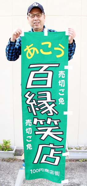 一日限定で開催される「あこう百縁笑店」。のぼりが目印