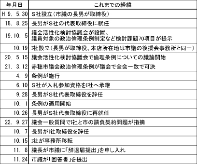 赤穂市議会政治倫理条例と一連の問題を巡るこれまでの経緯